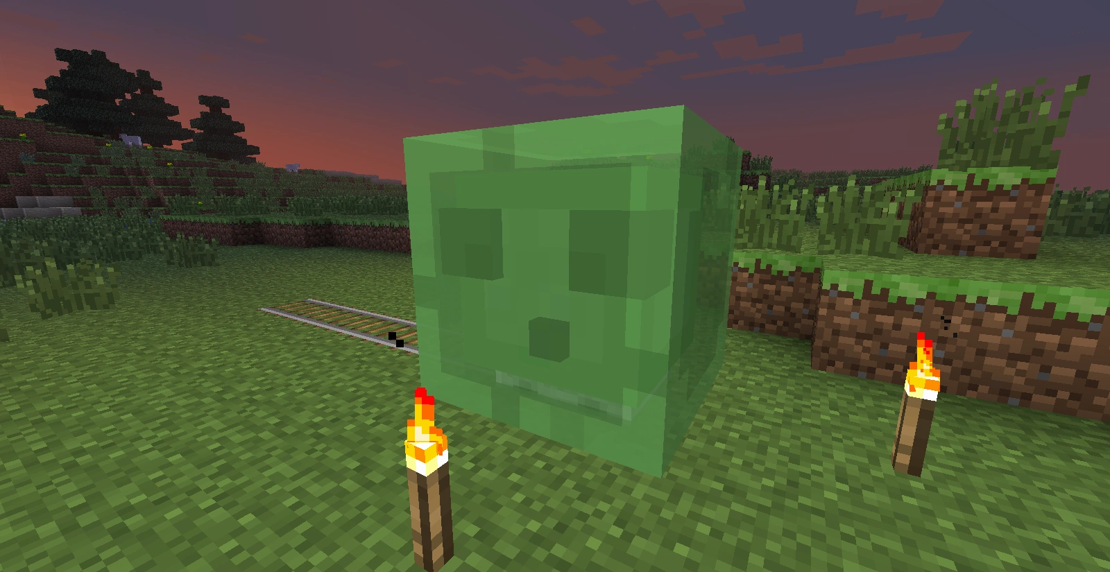 - The block a Slime is standing on will drip green liquid if looked at from below, similarly to lava and water.