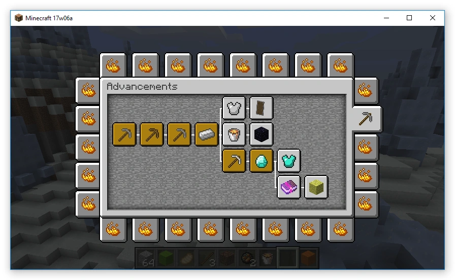 | 17w17a | Nieuwe vooruitgangen en twee nieuwe tabs toegevoegd: De End en Nether. | |||