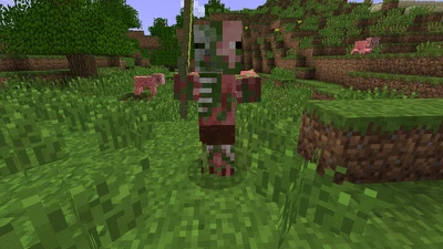 - Zombievarkensmannen hebben aan hun rechterkant het uiterlijk van een skelet, in het midden dat van een zombie en aan de linkerkant zien ze eruit als een varken.