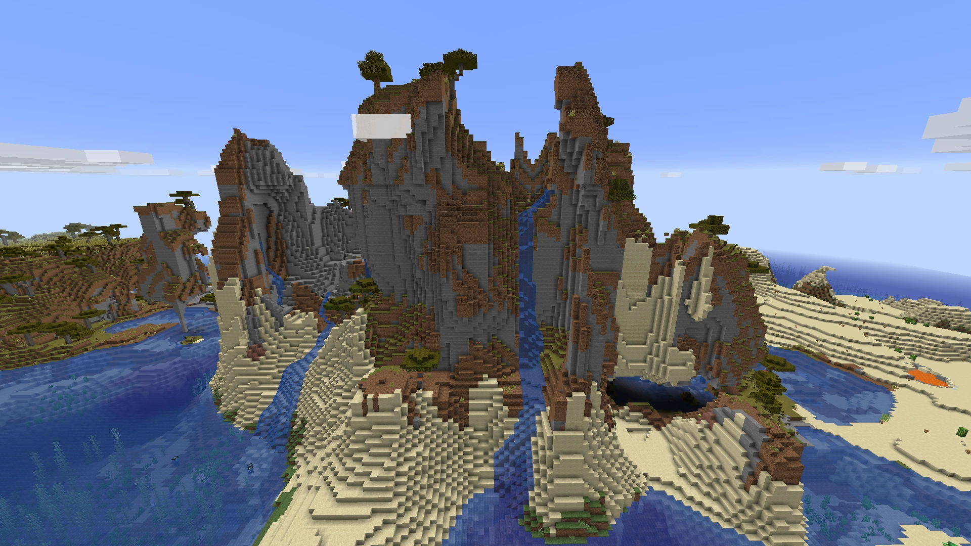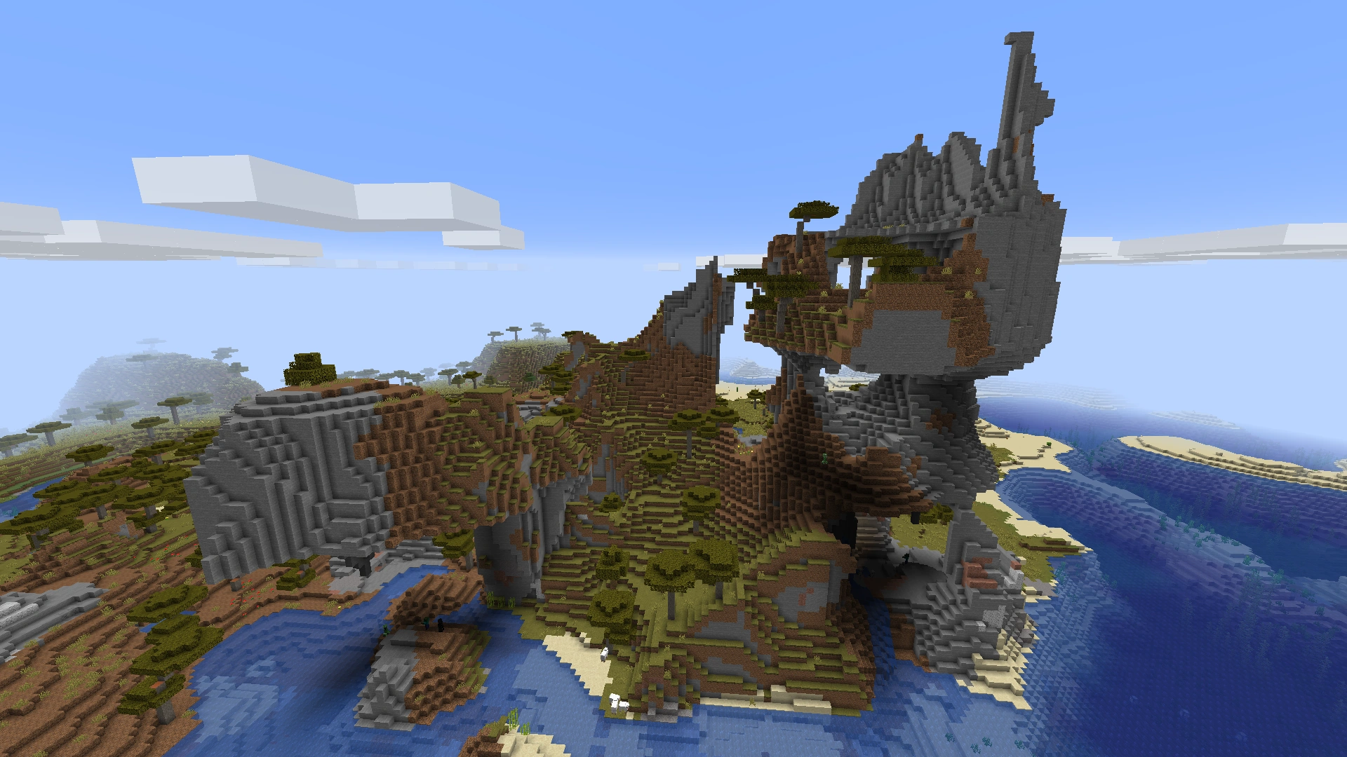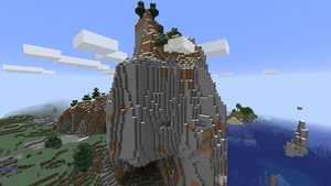 Bardzo górzysty biom z niewielką ilością dębów i nieco większą ilością świerków. Występują tutaj rzadko spotykane krajobrazy, jak klify, latające wyspy, wodospady czy wąwozy. Śnieg pada tylko na wyższych wysokościach, pokrywając wierzchołek góry białym puchem. Jest tu więcej jaskiń, niż na innych terenach. Góry są niebezpieczne, gdyż przez swoje kształty mogą doprowadzić do szybkiej śmierci poprzez upadek. Są to również jedyne tereny, na których można znaleźć naturalnie występujące złoża szmaragdów i rybiki cukrowe. |