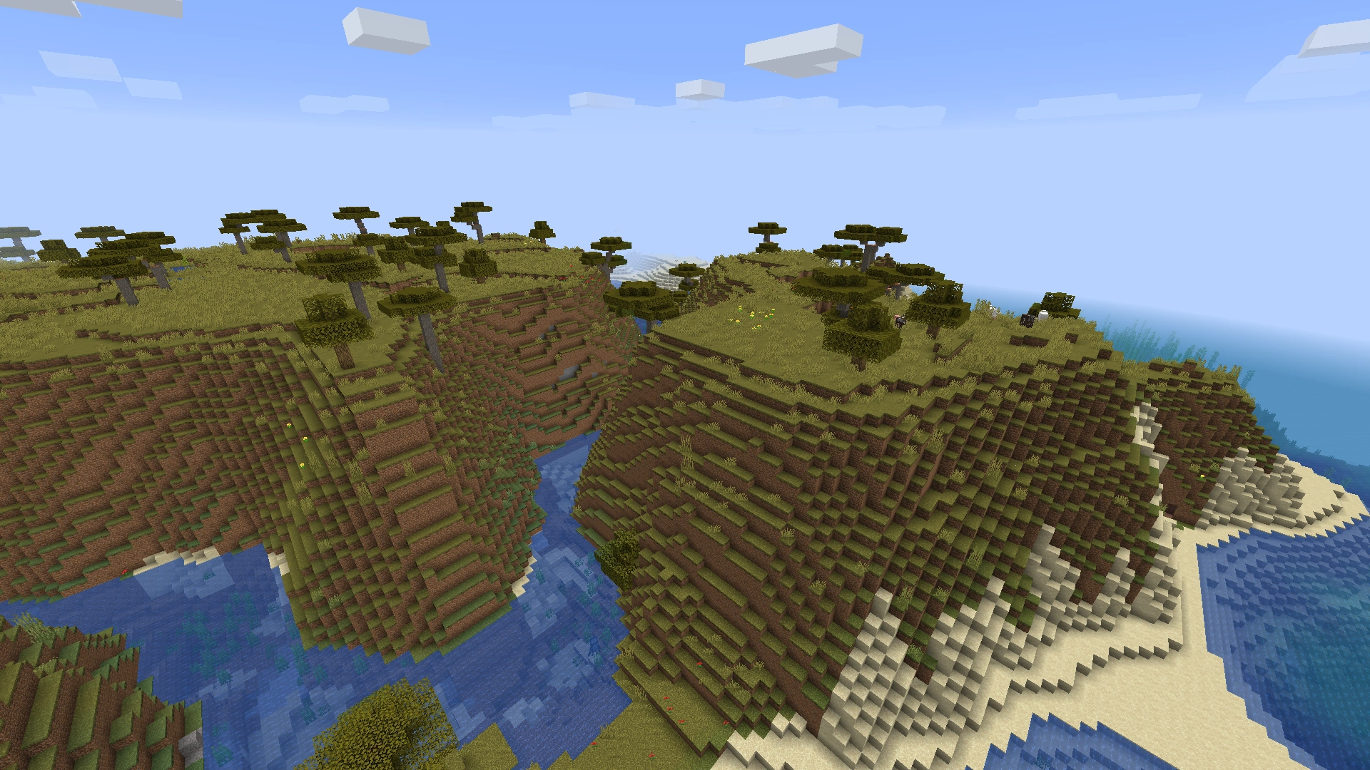 Bardziej górzysta odmiana równin z występującymi czasem oczkami wodnymi i jaskiniami. Pojawiały się tu konie, owce, osły, kurczaki i krowy. Na tym biomie występowało dużo trawy, czasami kwiaty. Nieistniejący od 1.18. |