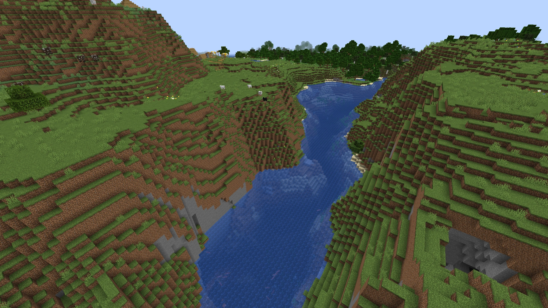 Biom niemal całkowicie porośnięty trawą i z rzadko spotykanymi, pojedynczymi drzewami. Oczka wodne, wyjścia z jaskiń i wioski można tu spotkać dosyć często. Pasywne moby pojawiają się naturalnie i jest to jeden z dwóch biomów, na których można spotkać konie i osły. Występują tu krowy, owce i kurczaki. |