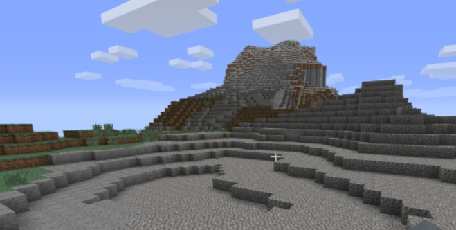 Bardzo górzysty biom, z niewielką ilością dębów i nieco większą ilością świerków. Występują tutaj rzadko spotykane krajobrazy, jak klify, latające wyspy, wodospady czy wąwozy. Śnieg pada tylko na wyższych wysokościach, pokrywając wierzchołek góry białym puchem. Jest tutaj więcej jaskiń, niż na innych terenach. Góry są niebezpieczne, gdyż przez swoje kształty mogą doprowadzić do szybkiej śmierci, poprzez upadek. Ekstremalne wzgórza to jedyne tereny, na których można znaleźć naturalnie występujące złoża szmaragdów i rybiki cukrowe. |