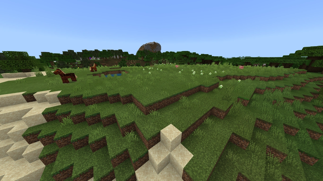 Biom niemal całkowicie porośnięty trawą i z rzadko spotykanymi, pojedynczymi drzewami. Oczka wodne, wyjścia z jaskiń i wioski można spotkać dosyć często. Pasywne moby spawnują się tutaj naturalnie i jest to jeden z dwóch biomów, na których można spotkać konie. |