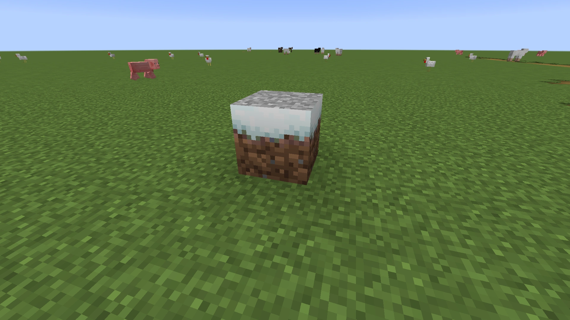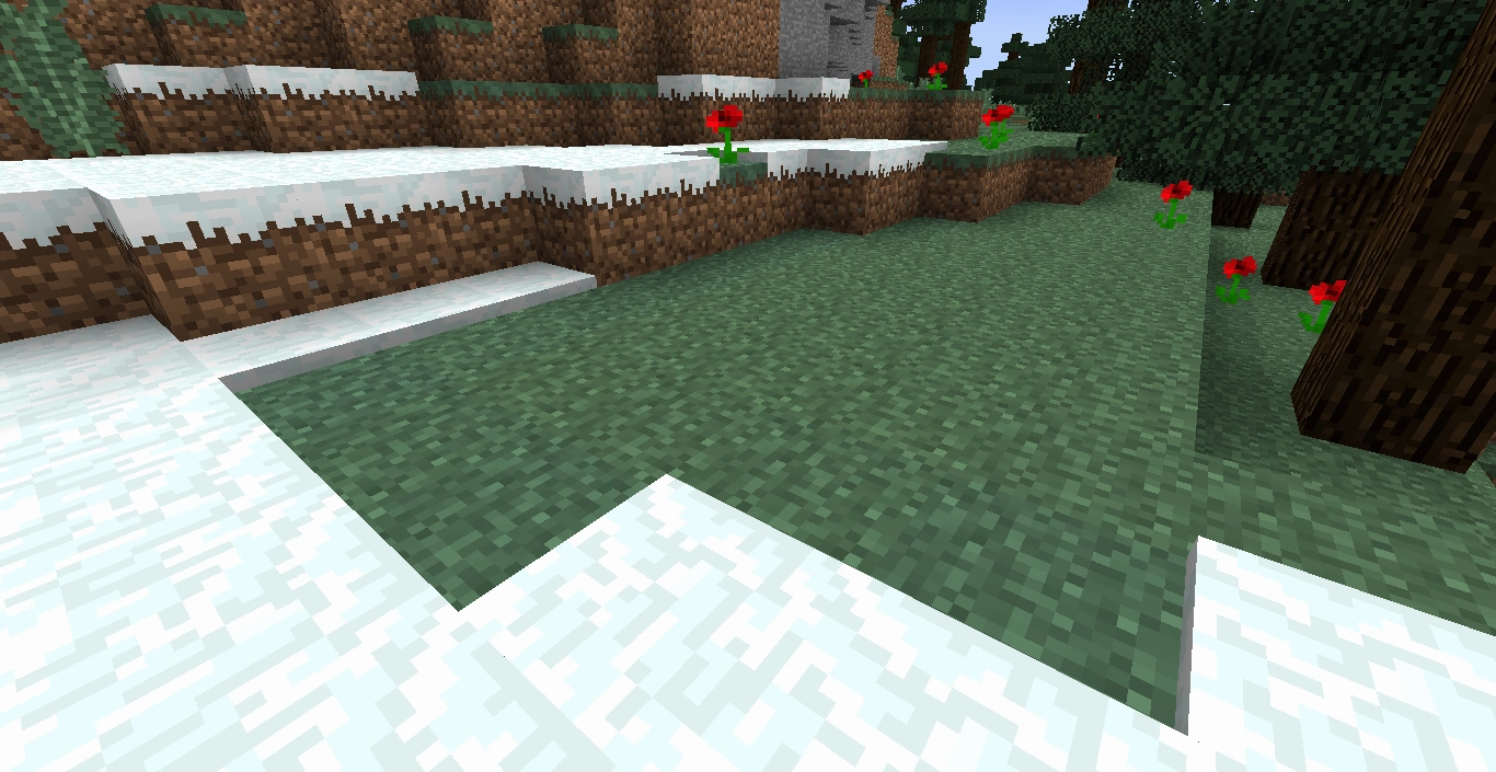 Tekstura bloku trawy zmienia się, jeżeli na bloku znajduje się śnieg.