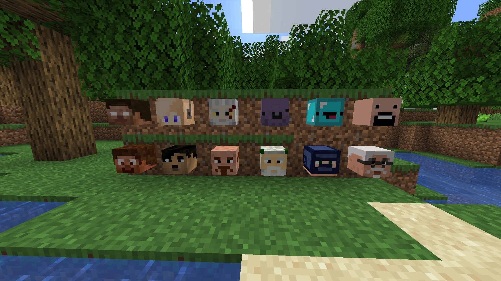 - ↑ Od lewej na górze: Herobrine, TheTNT1500, Wiedzmin, Podjadek, Gargamelel i Notch. Od lewej na dole: TIDZIMI, AdolfHitler, Lenin, Jeb_, RoxMb i LeonTrotsky
