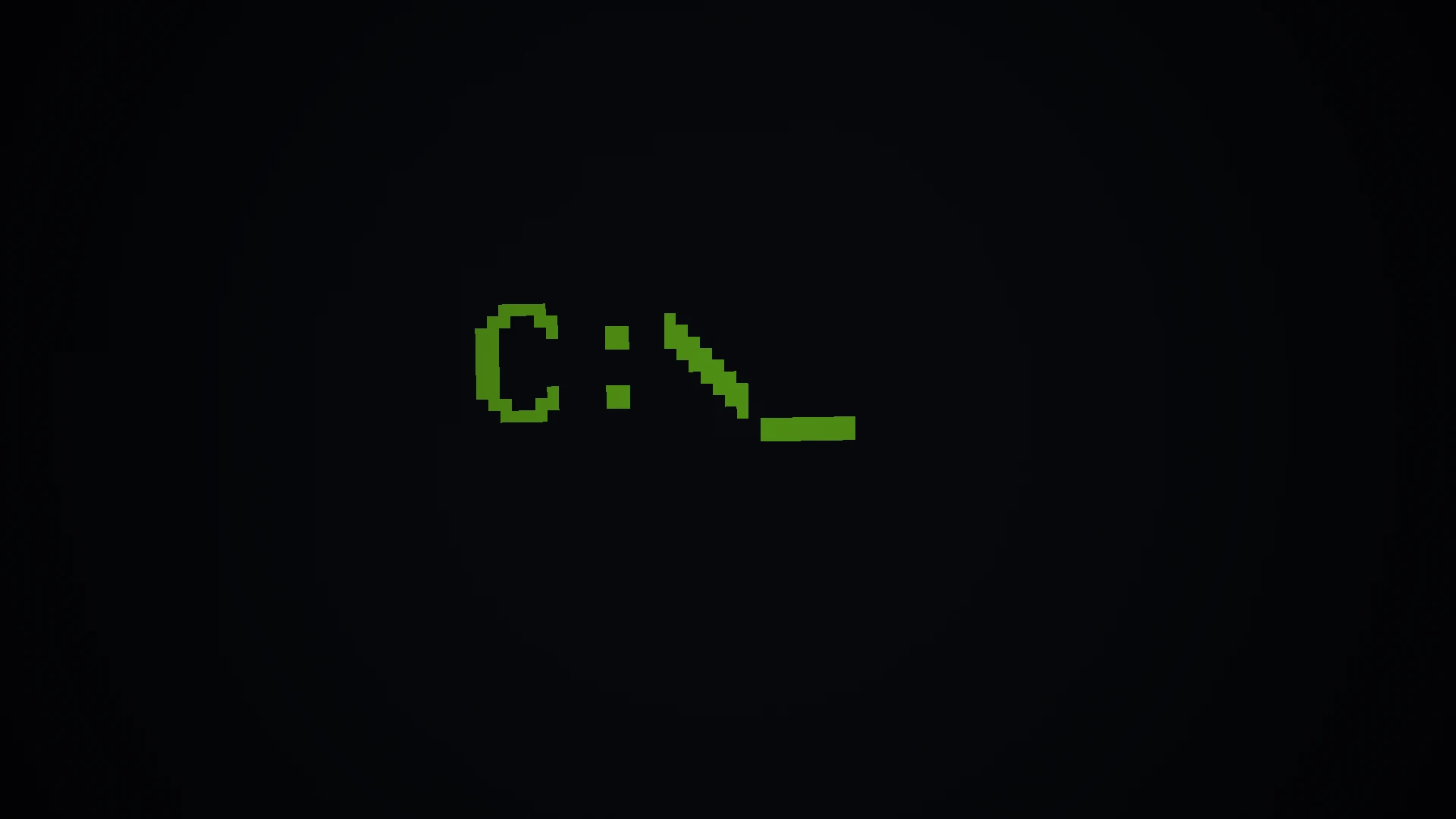 - Na środku znajduje się napis z jasnozielonego betonu: "C:\", a obok tego jest migający znak "_" zbudowany z kursorów.
