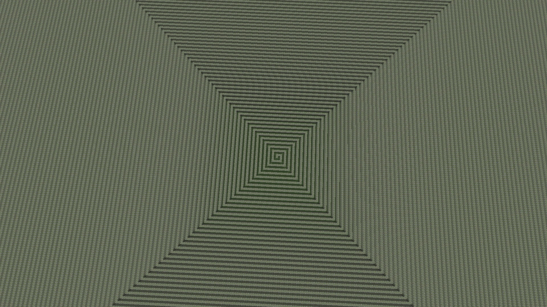 - W wymiarze znajduje się wielka spirala zrobiona z omszonego bruku.