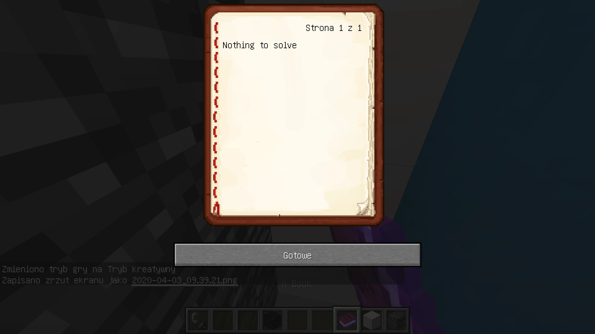 - W celu wejścia do jednego nowego wymiaru, należy wrzucić książkę z piórem lub zapisaną książkę do portalu do Netheru. Może — ale nie musi — być podpisana.