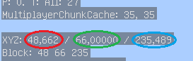 Koordynaty (ang. Coordinates) to dane określające położenie na mapie. W trakcie gry można je zobaczyć naciskając klawisz F3.
