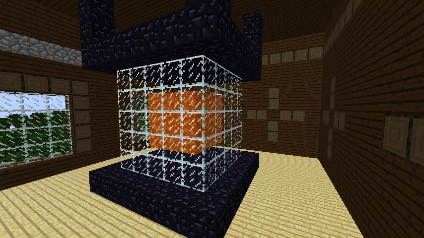 | 2x2_s1 | Pokój z lawą | Sekretny pokój z dużym szklanym naczyniem pełnym lawy, z ukrytym blokiem diamentu pośrodku. | 225 Brzozowe deski110 Obsydian