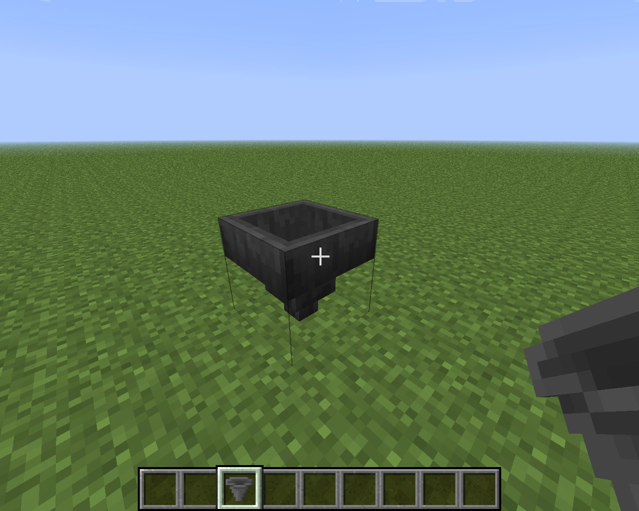 - Kładąc lej poprzez kliknięcie na dolną ścianę bloku, ten nie połączy się z nią, tylko będzie skierowany w dół.