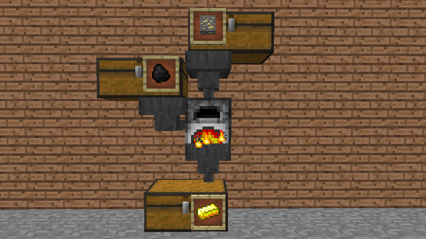 - Leje mogą dostarczać paliwo i przedmioty do przetopienia – lej musi być skierowany na ściankę boczną dla paliwa i od góry na przykład dla rud. Można także wyciągać przepalone przedmioty, stawiając lej pod piecem (nie otrzymujemy doświadczenia – doświadczenie gromadzi się w piecu i zostaje przyznane graczowi wraz z pierwszym przetopionym przedmiotem wyjętym ręcznie).