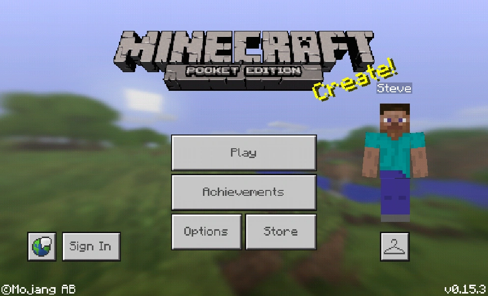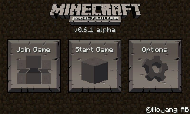 Pocket Edition ma inaczej wyglądające menu główne niż to znane z wersji komputerowej. Gracz do wyboru ma 8 opcji: