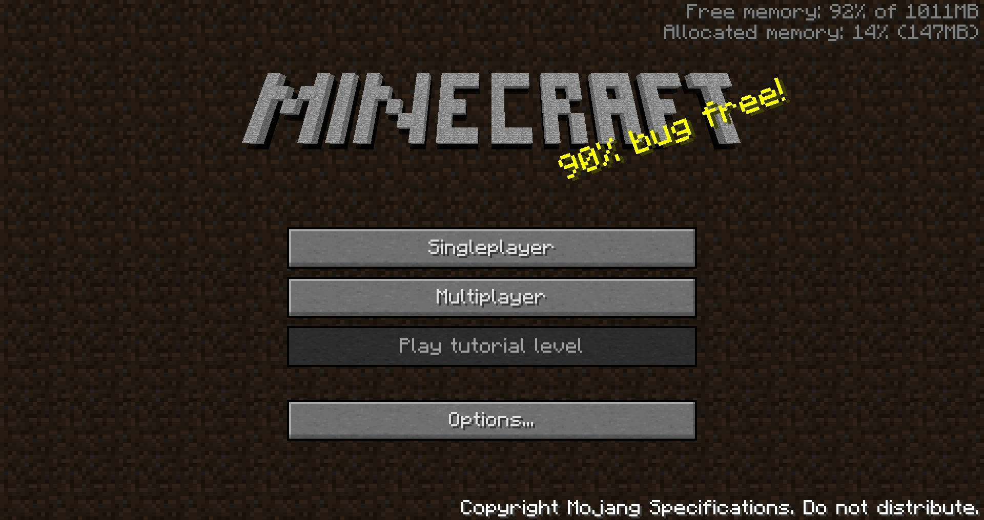 | Alpha 1.2.2 — Beta 1.3_01 | Przycisk Play Tutorial Level zastąpiony przez Mods and Texture Packs | |