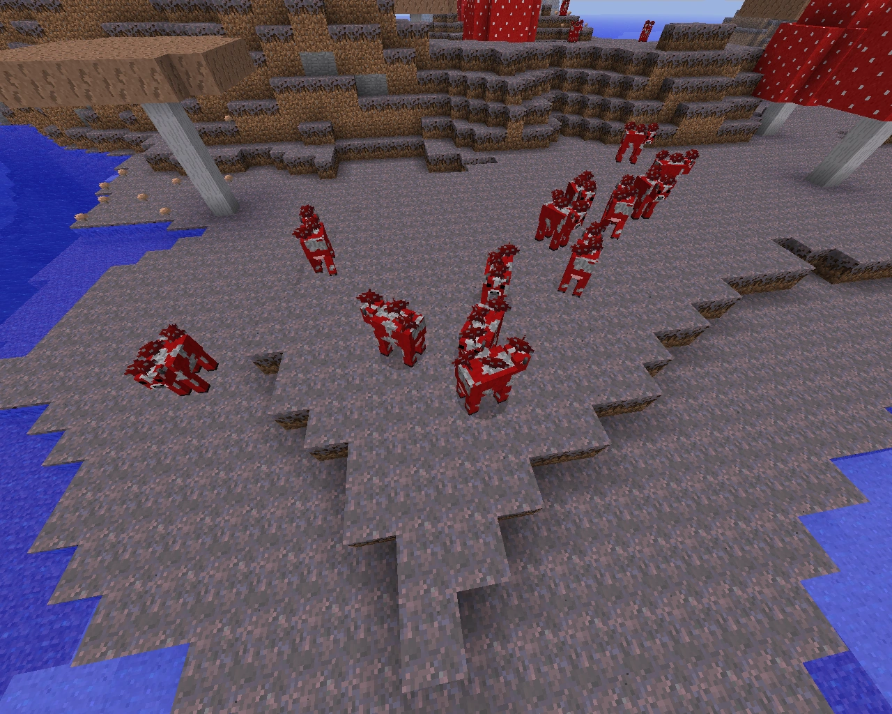 W wersji Beta 1.9 Pre-realease 1 przyjęto, że grzybowe krowy, to będą po prostu czerwone krowy, ponieważ tekstura była w większości czerwona.