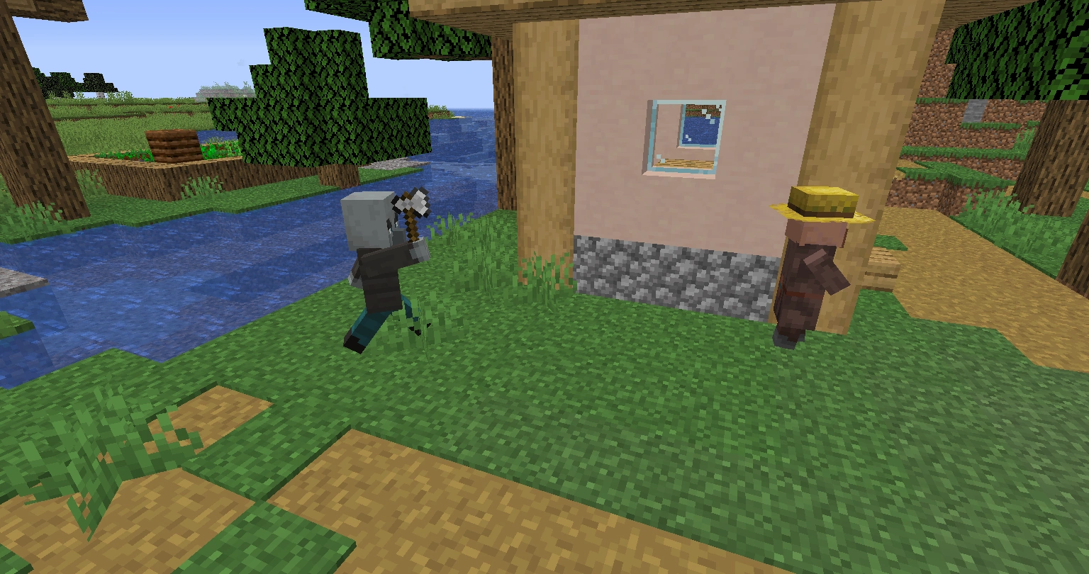 Obrońcy są wrogo nastawione do graczy, osadników, wędrownych handlarzy i żelaznych golemów. Będą starali się ich zaatakować za pomocą trzymanej przez nie żelaznej siekiery, a żeby tego dokonać mogą nawet sprintować.
