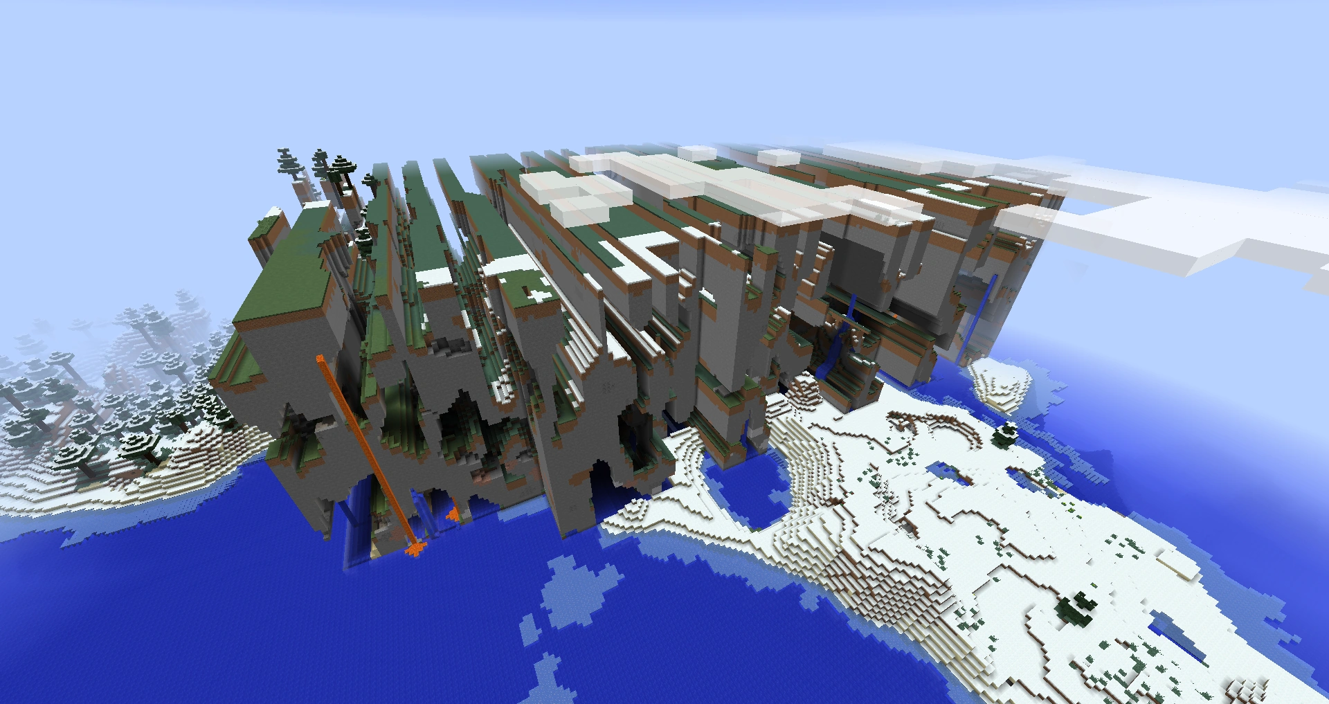 Rudy mogą być znajdywane powyżej swojej maksymalnej wysokości występowania. Niestety, ale z powodu podtopienia terenu wszystko z wyjątkiem węgla jest trudne, a nawet niemożliwe do wydobycia. Jaskinie są generowane, jednak występują rzadziej i są małe. Można spotkać również lochy i jeziora. Wodę i lawę można spotkać i w jaskiniach i na otwartym terenie.