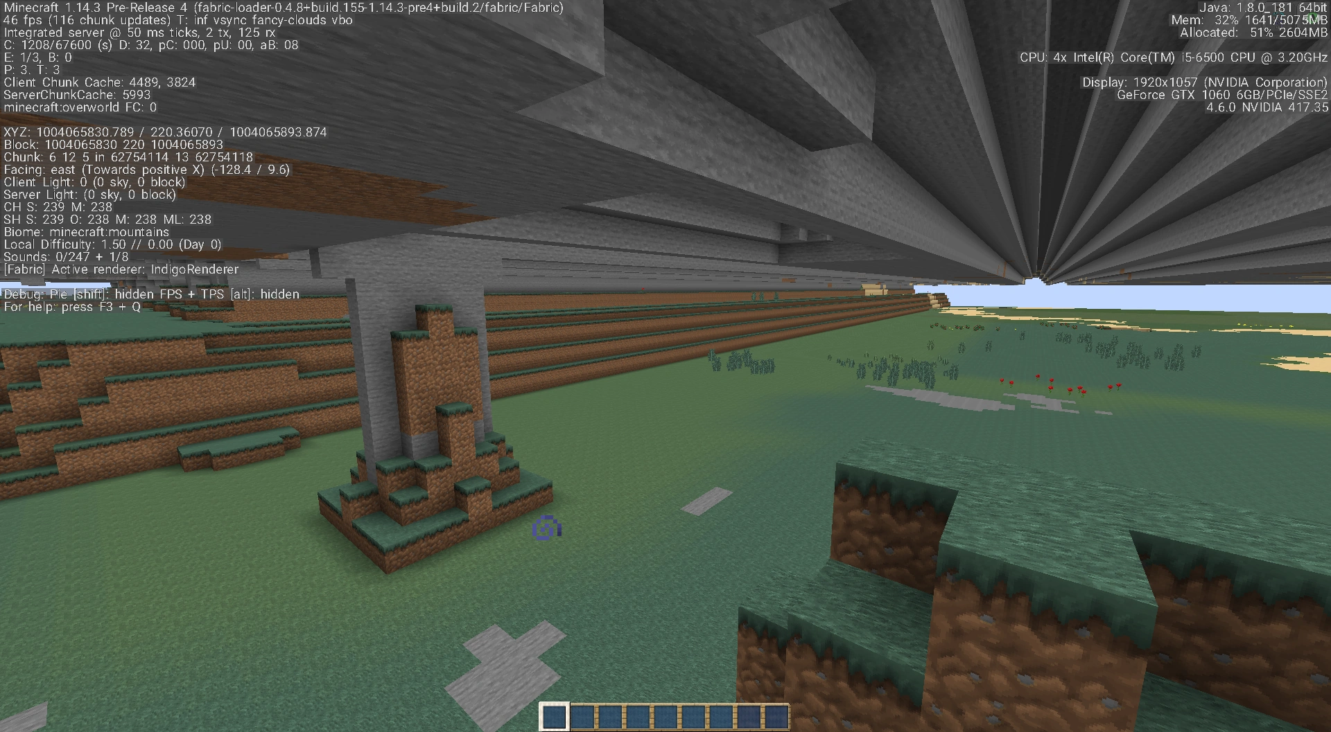 - X/Z: ±2,097,152: Świat całkowicie przestaje się renderować pod pewnymi kątami.
