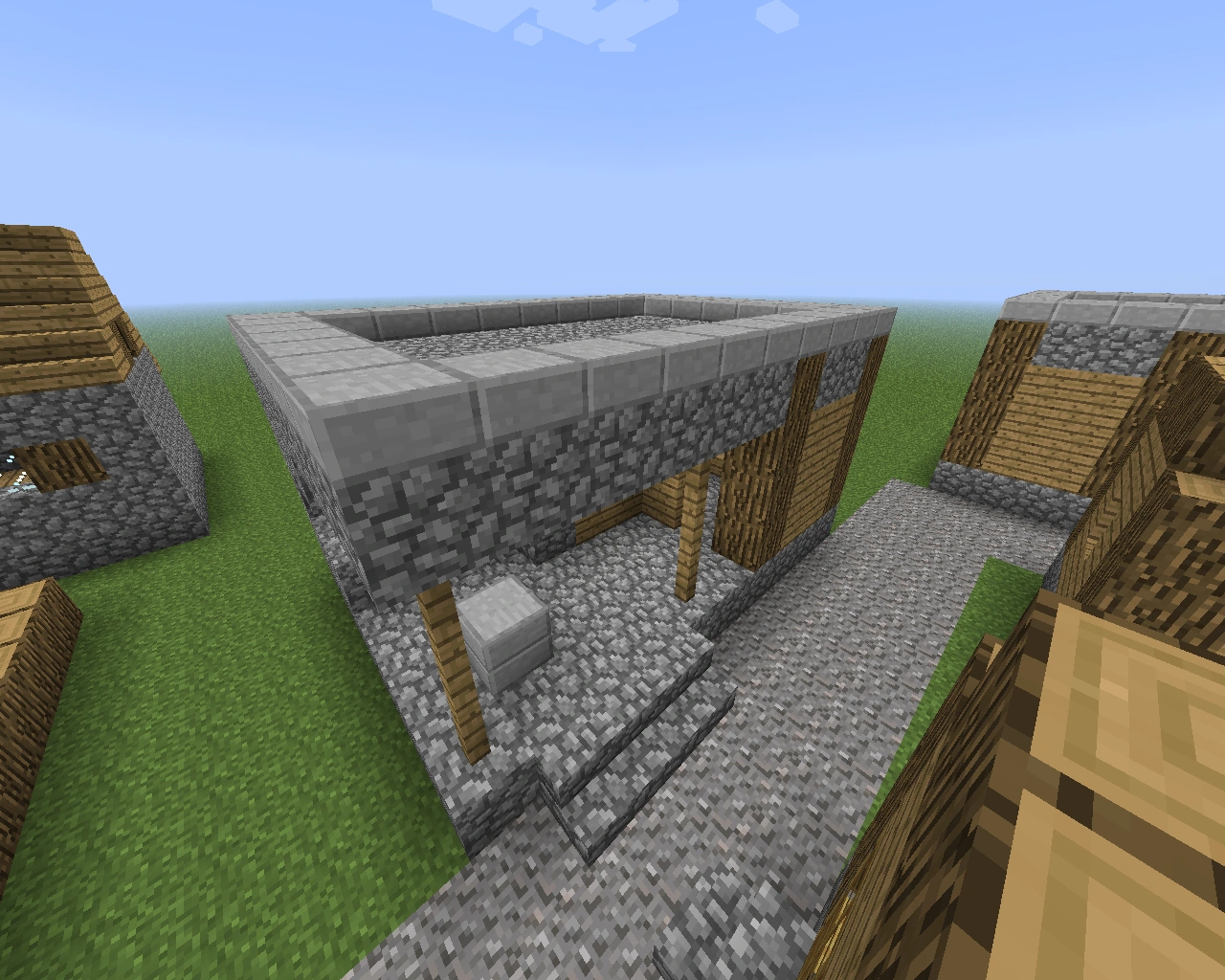 • W wiosce dwa kamienne półbloki obok pieców miały zastępować wcześniej jeszcze nie dodane kowadło. Kiedy kowadło zostało dodane do Minecrafta budowa domu kowala się nie zmieniła.