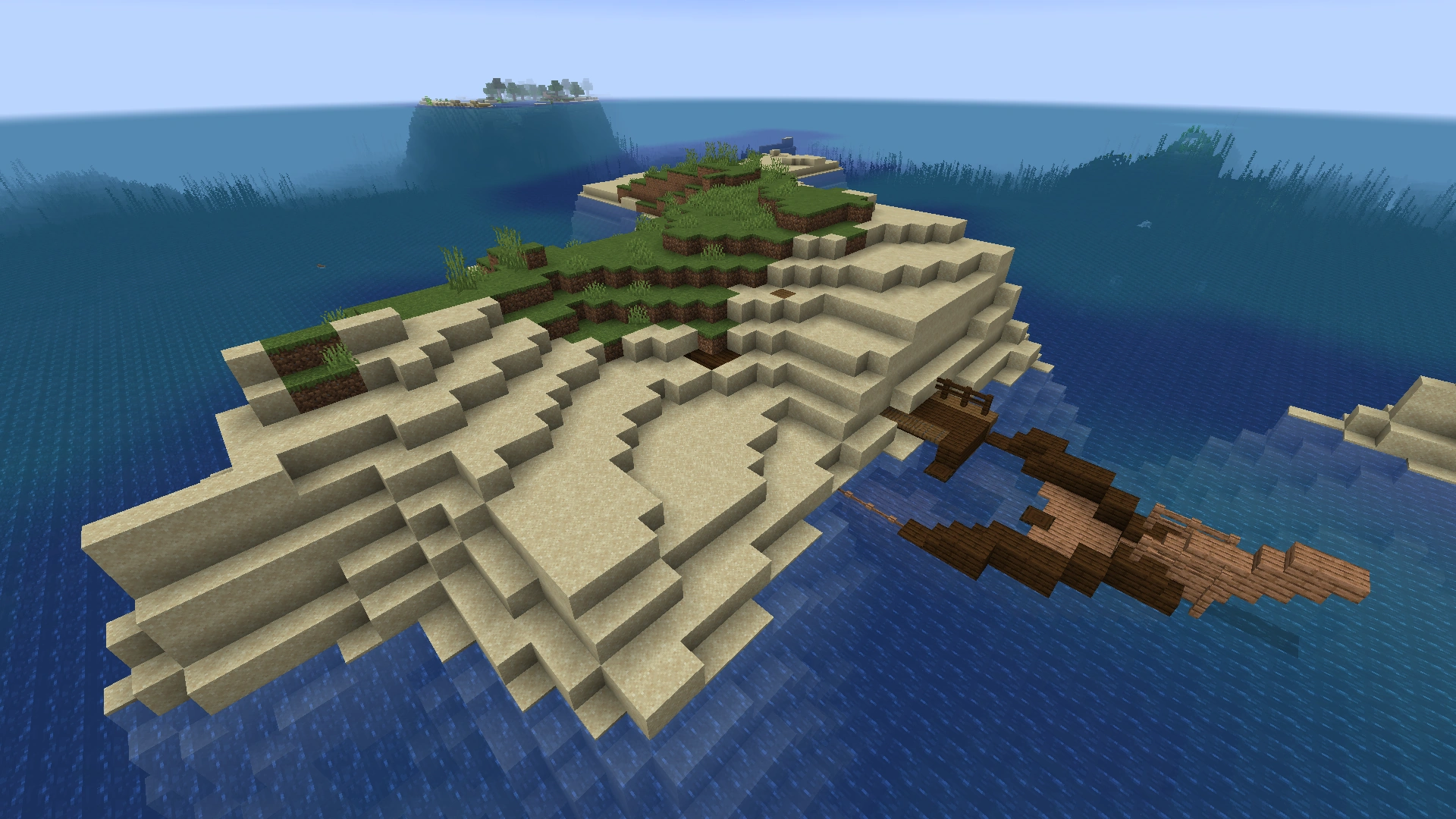 Równiny mogą się też wygenerować jako wyspa na oceanie. Widać tutaj też wrak statku.