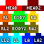 Wielkość drugiej warstwy jest na torsie, rękach i nogach jest 0,25 piksela większa niż pierwsza (wewnętrzna) warstwa. Dla głowy druga warstwa jest 0,5 piksela większa niż pierwsza warstwa.