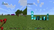 728 KB | Po środku lewej strony podzielonego ekranu widać teksturę spaczonych i szkarłatnych desek z daleka. Po prawej stronie widać kolejno: spaczone korzenie, spaczone kiełki, spaczone schody, płaczący obsydian i spaczone drzwi. |