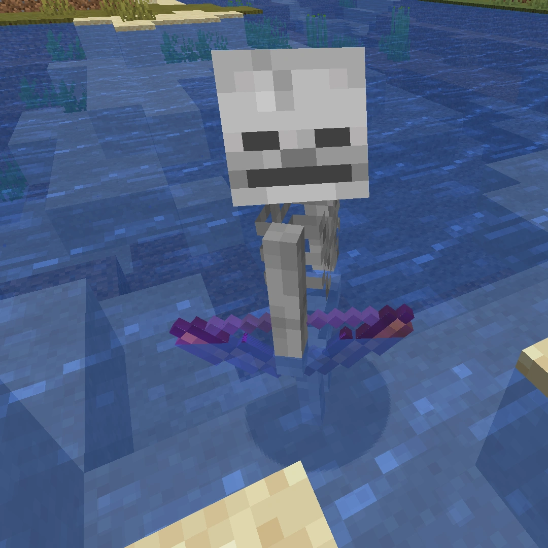 - Chociaż szkielety podchodzą do gracza jak zombie to dotykanie ich nic nie robi graczowi, chyba że szkielet jest bez łuku.