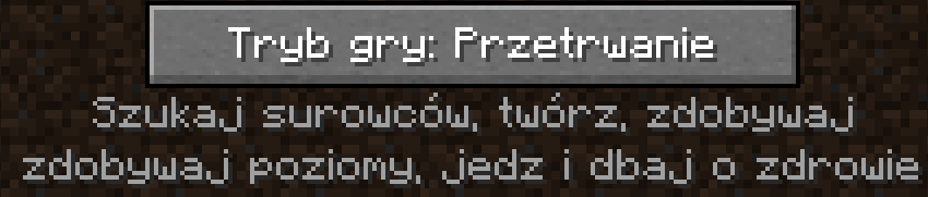 W tym trybie gracz zaczyna od zera, musi zbierać surowce, wytwarzać przedmioty, narzędzia, bloki, oraz zdobywać punkty doświadczenia. Tryb ten wzbogacony jest o różne elementy rodem z gier RPG - zdrowie, głód, pasek pancerza, ekwipunek, oraz pasek powietrza (pod wodą). Po śmierci, gracz wraca do swojego punktu odrodzenia.
