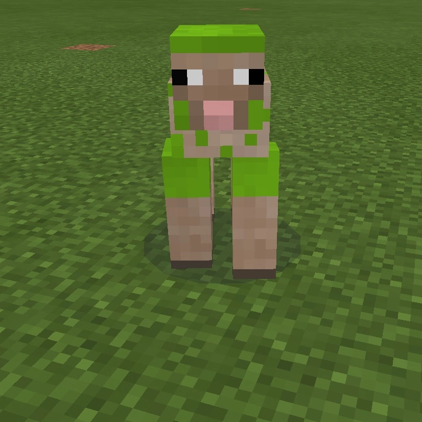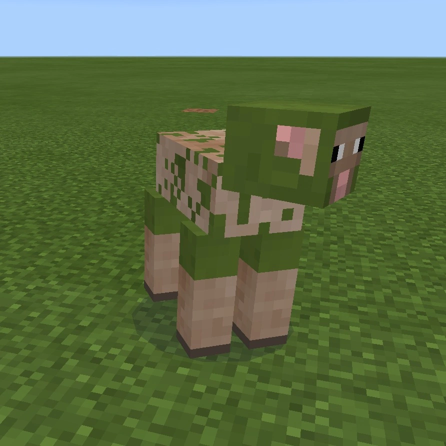 W Bedrock Edition ostrzyżone owce są koloru wełny, na jaki zostały pofarbowane.