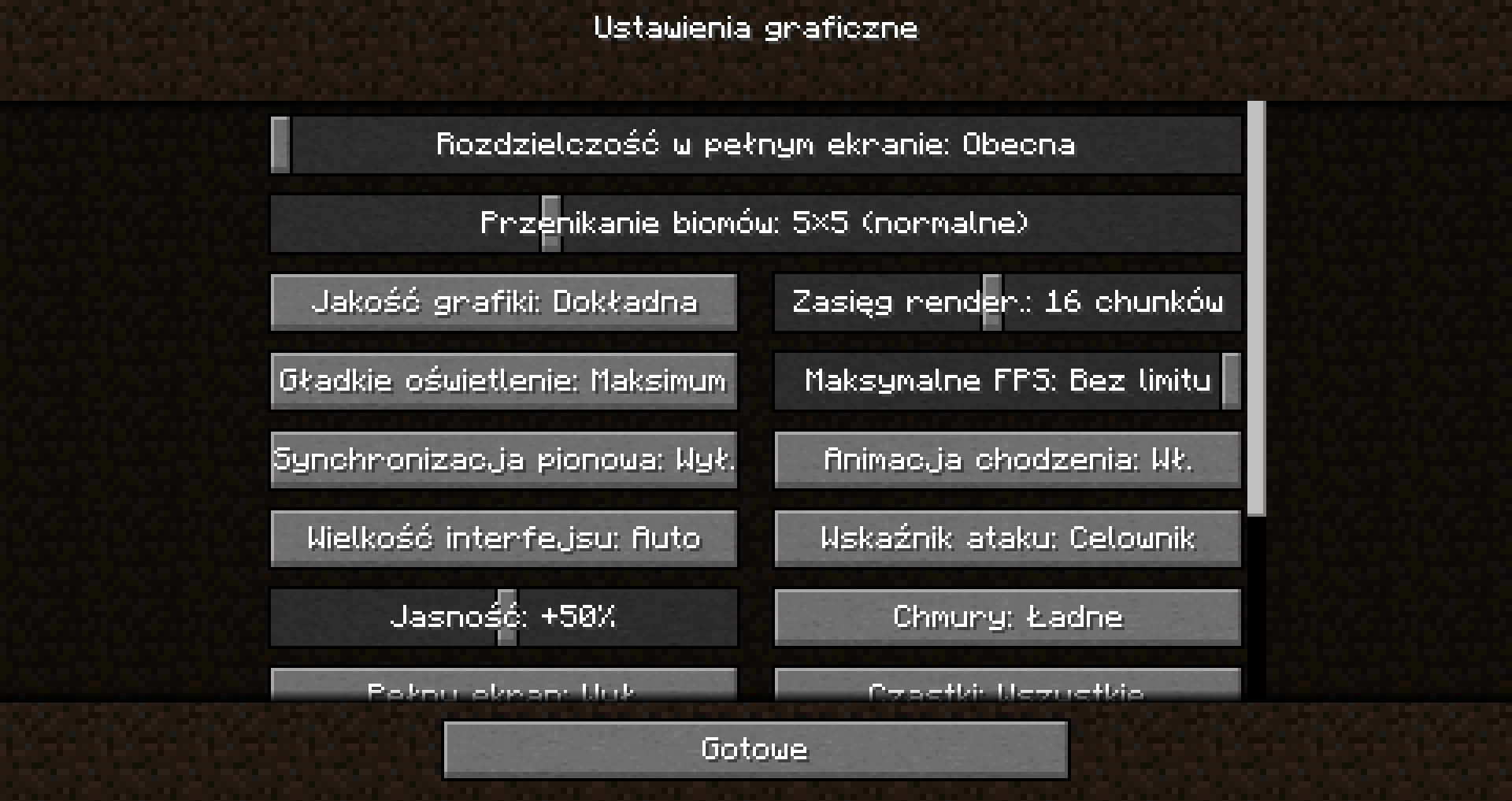 | Odległość renderowania | Opcja ta pozwala ustawić, ile chunków ma gracz w zasięgu wzroku. Im mniejsza liczba takich stref, tym wyższe FPS.