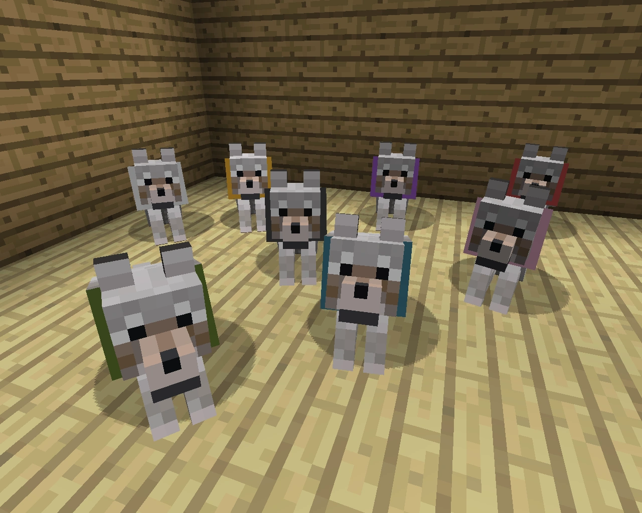 - Na modzie Sophisticated Wolves wilki są w umaszczeniu białym i brązowym.