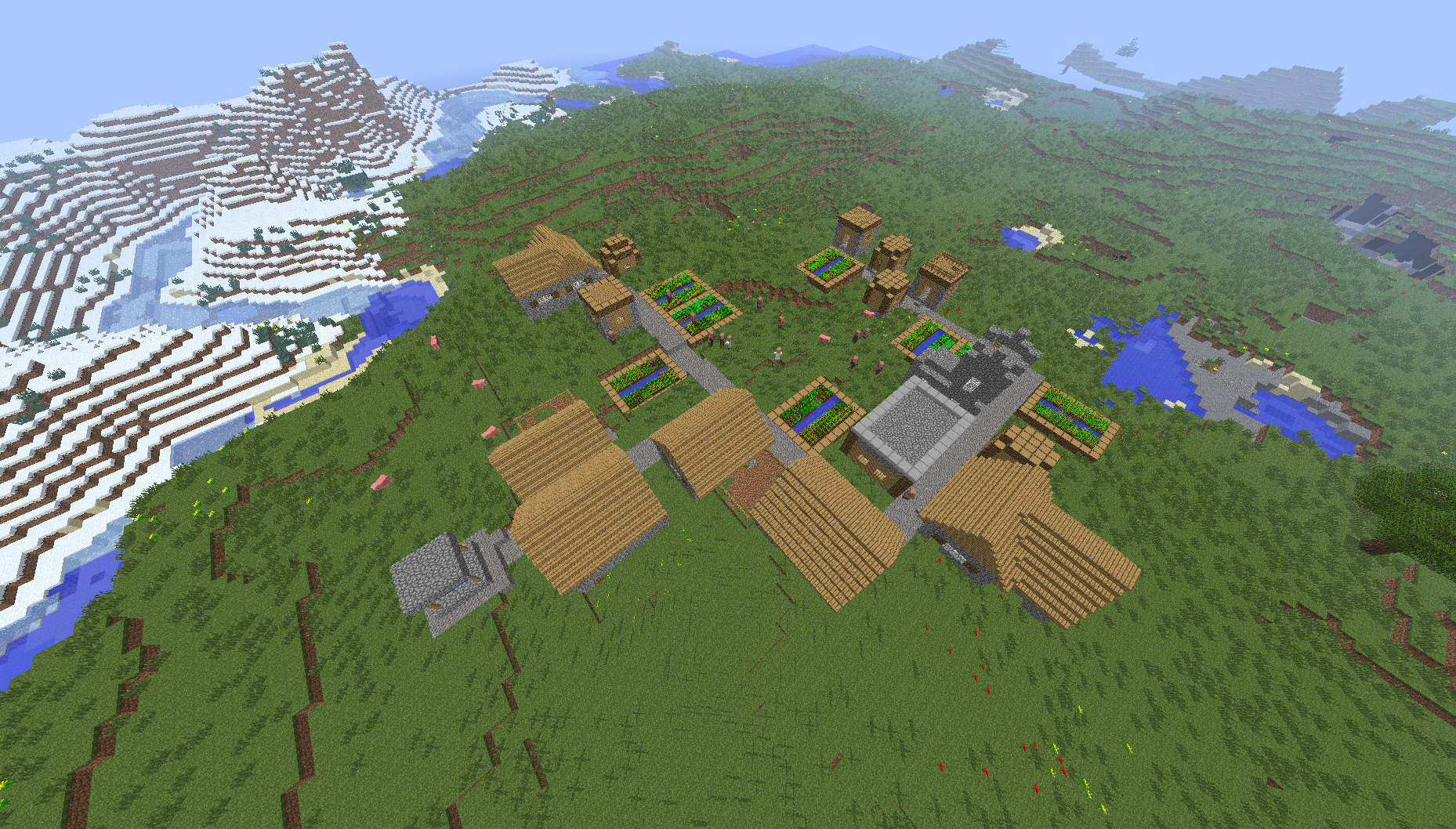 - Czasami wioska może być wygenerowania w tym samym miejscu co oczko wodne i jest ona w części zalana.
