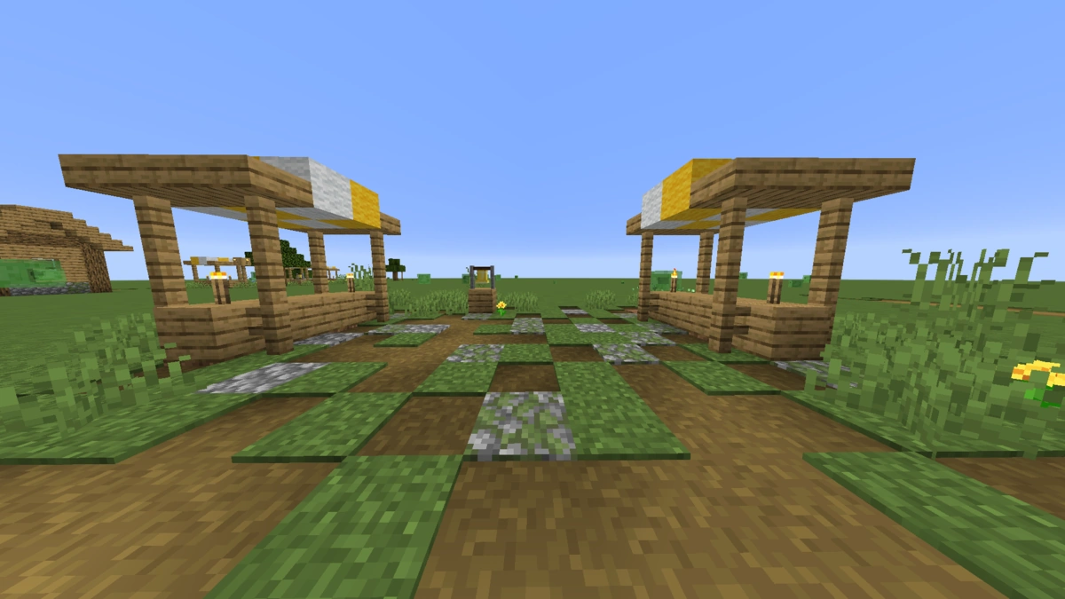 | Wioski na sawannie są zbudowane z akacjowych desek i drewna, zamiast bruku i dębowych desek. | |||||