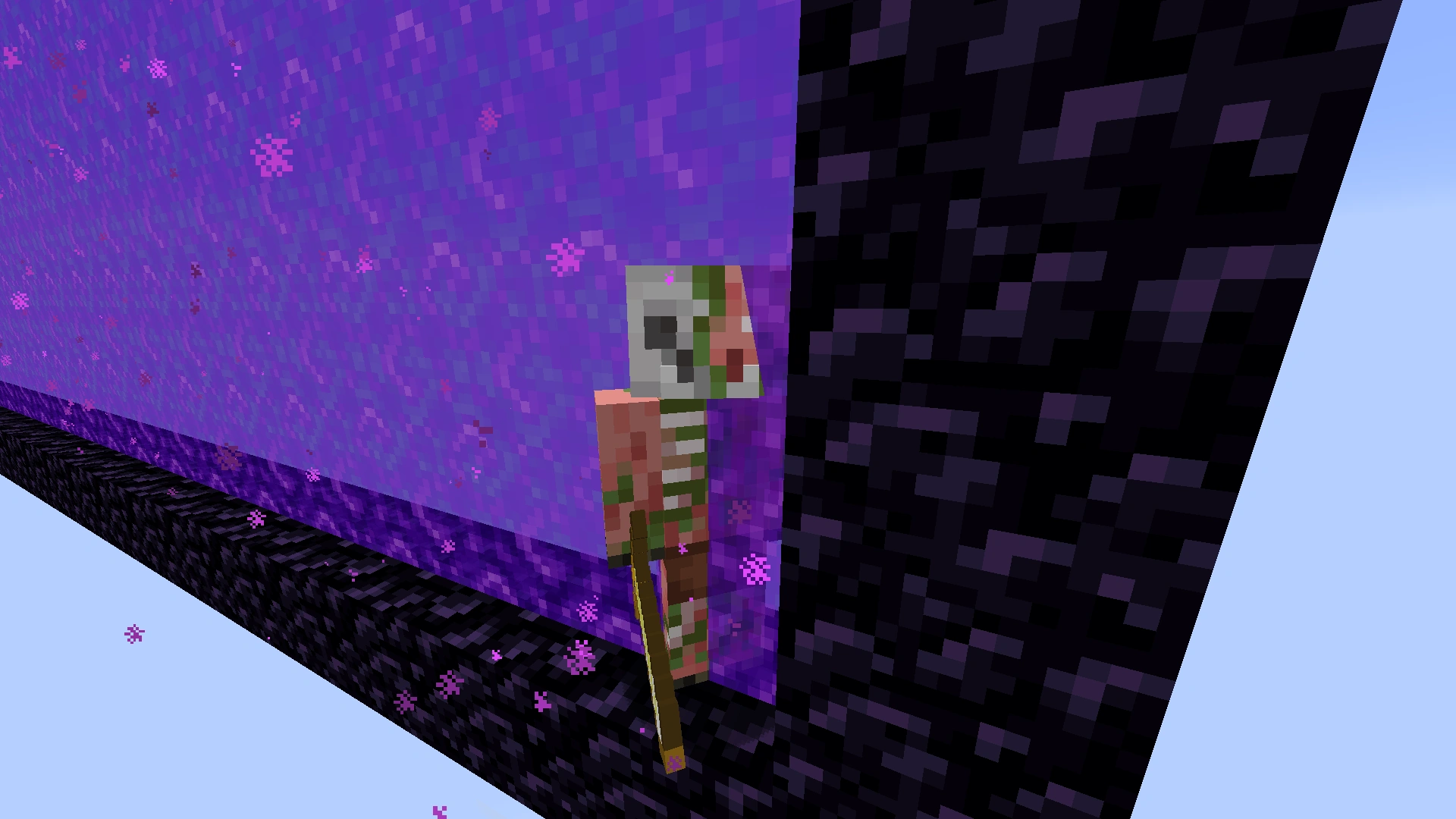 Zzombifikowany piglin może przenieść się do innego wymiaru za pomocą portalu.
