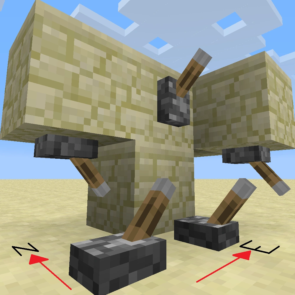 Quando colocada nas laterais dos blocos, para baixo é ligada e para cima é desligada. Na parte superior ou inferior de blocos, desligada é norte ou oeste, e ligada é sul ou leste.