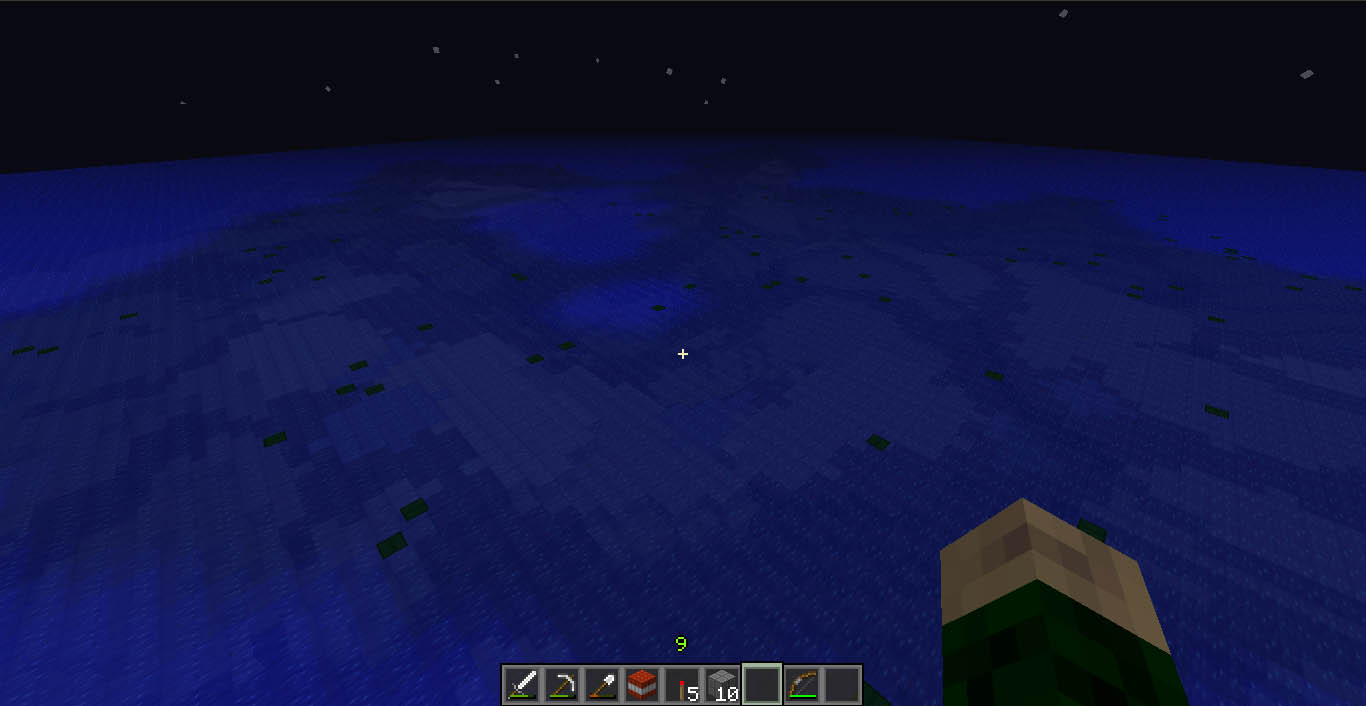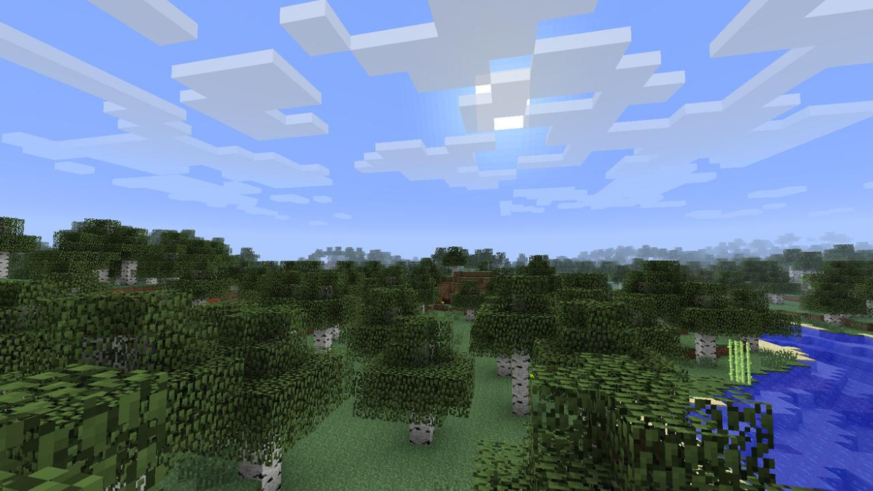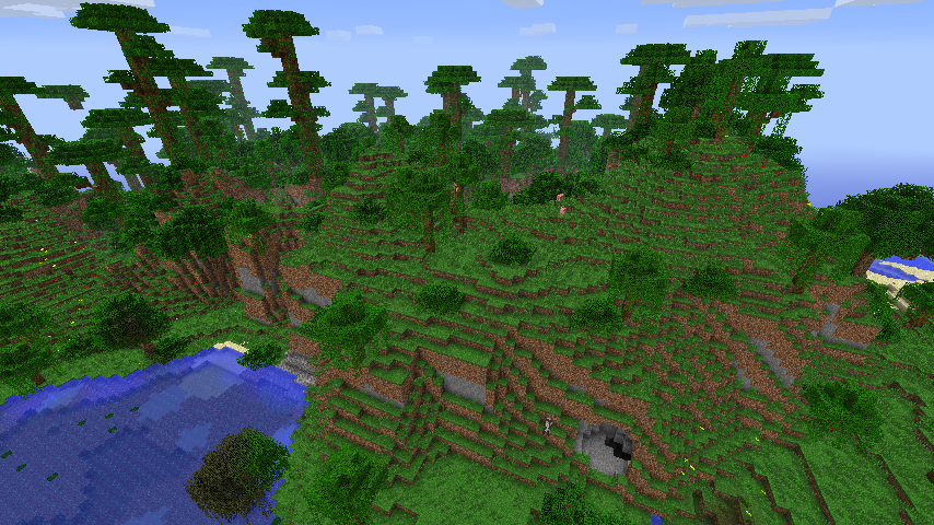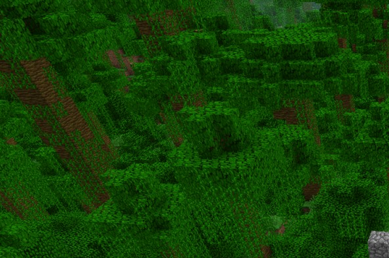 Uma imagem muito antiga de biomas com trabalho em andamento. "À direita do jogador é um taiga, para a esquerda ou é uma floresta ou mata, eu não me lembro. Na distância é provavelmente tundra." ~ Notch