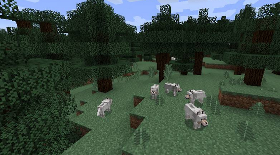 Mega Taiga de Pinheiros | Uma variação do Mega Taiga. Neste bioma, há uma densidade muito maior de Pinheiros menores. Além disso, as árvores altas parecem com grandes Pinheiros em vez das árvores baixas com tampo no regular bioma Mega Taiga. |