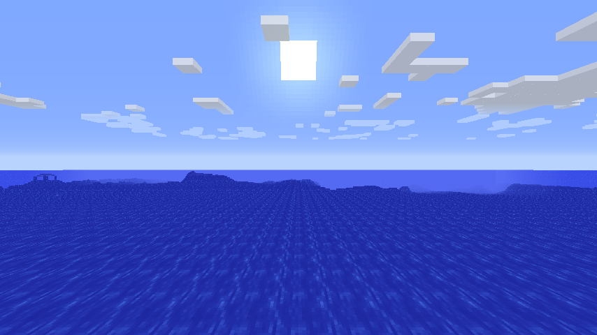 Um grande bioma aberto feito inteiramente de água, com alívios subaquáticos no fundo do mar, tais como pequenas montanhas e planícies, geralmente incluindo cascalho. Oceanos tipicamente se estendem sob 3.000 blocos em qualquer direção. Pequenas ilhas com vegetação pouco frequentes podem ser encontrados nos oceanos. Mobs passivos são incapazes de geram nestas ilhas, mas hostis podem. Entradas de caverna podem ser encontrados com pouca frequência no fundo do oceano. Na versão Xbox 360, eles cercam as bordas do mapa. |