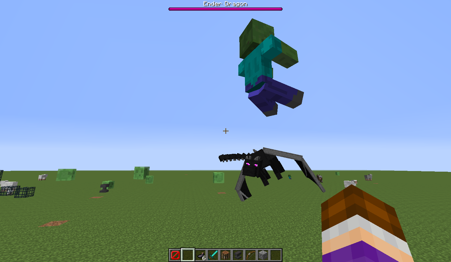 - A Hitbox do dragão ender é maior do que o próprio dragão ender, fazendo com que os jogadores a sejam empurrados para longe dele.