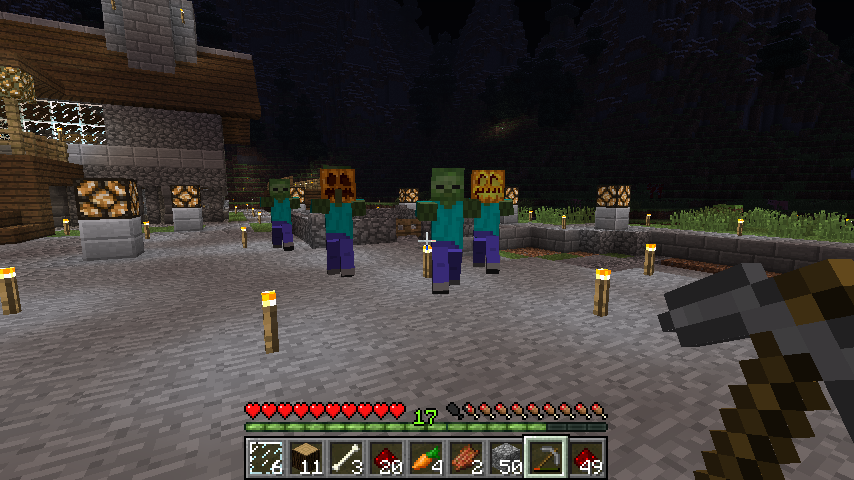Em 31 de outubro,zombies, esqueletos, Homem-porco Zumbi e wither skeletons às vezes pode usar abóboras ou abóbora de Halloweens em suas cabeças. Esses monstros vão derrubar esses blocos se mortos usando uma ferramenta encantada com saque. Este recurso foi adicionado na versão 1.4.2 para o Dia das Bruxas de 2012 e a cada Dia das Bruxas depois disso.