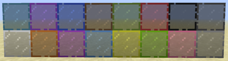 - Em Edição Java 1.7.2, o Vidro Pintado foi adicionado ao jogo sob o nome de Vidro Tingido.