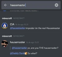 Hausemaster visto no Discord oficial de Minecraft. Este arquivo está sem licença. Por favor, defina uma licença aplicando a correta predefinição de licenciamento. Imagens sem licença podem ser uma violação de direitos de autor, se