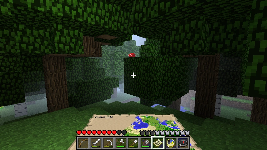 - Algumas árvores parecem ocasionalmente soltar maçãs ou mudas sem serem destruídas devido à criação de blocos de folhas não suportadas pela madeira.