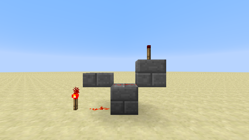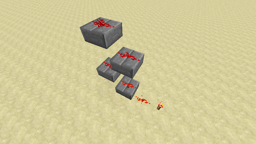 Redstone pode ser conectada ao fio no lado de lajes. Redstone colocada em cima de uma laje invertida pode receber sinais de um bloco adjacente de redstone um bloco mais baixo, mas não pode transmitir sinais para ela. Isso é por que "escadas" feitas de lajes invertidas, como ilustrado à direita, pode transmitir sinais redstone para cima, mas não para baixo.