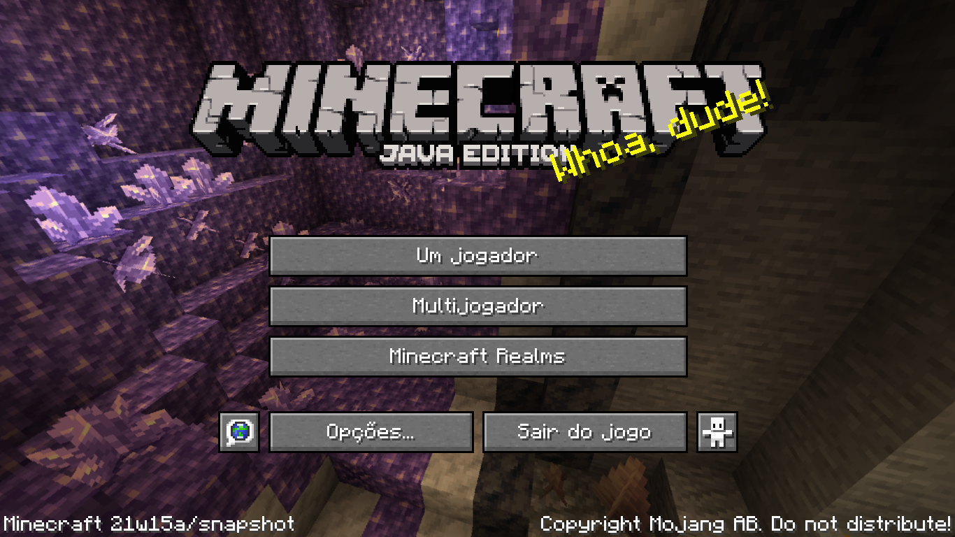 | 1.16 | 2 de abril de 2020 | Alterado o plano de fundo da tela de título em todos os snapshots 1.16 lançados para refletir o Nether Update. | |||