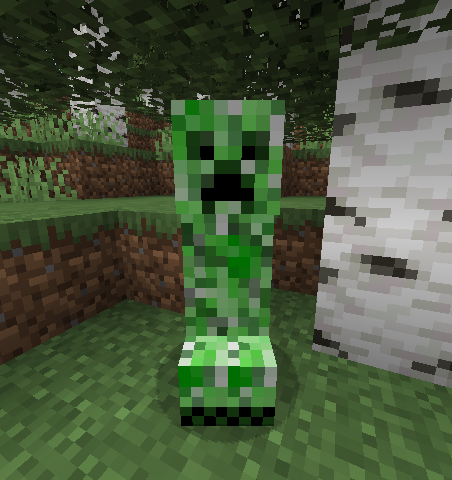 Um creeper em uma floresta. As trepadeiras perseguem o jogador e depois explodem quando se aproximam.