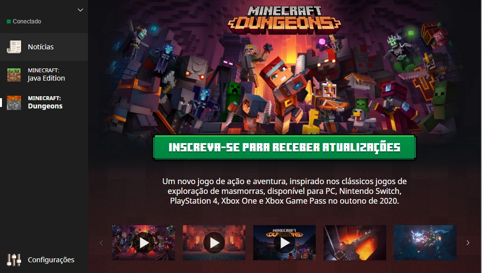 Em 24 de fevereiro, na versão do launcher 2.1.1230x, uma nova seção para o jogo Minecraft Dungeons foi adicionado onde você pode se inscrever na versão beta. Esta é a primeira vez que o launcher do Minecraft inclui um jogo diferente.