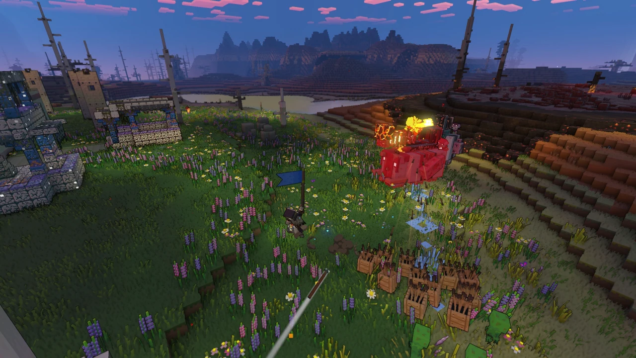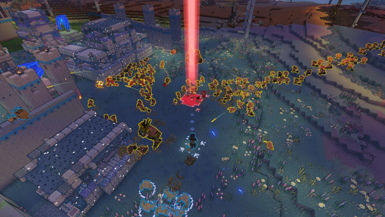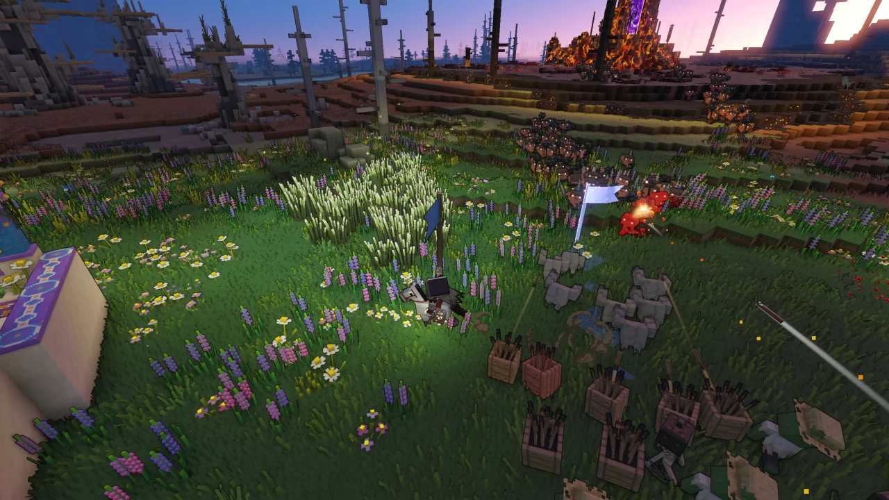 Uma vila deve ser defendida de vinte ondas (rodadas) de vários piglins que saem de três portais do Nether indestrutíveis.