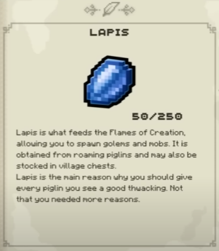Lazúli é largado por piglins ambulantes quando derrotados e pode ser encontrado em baús de vilas.